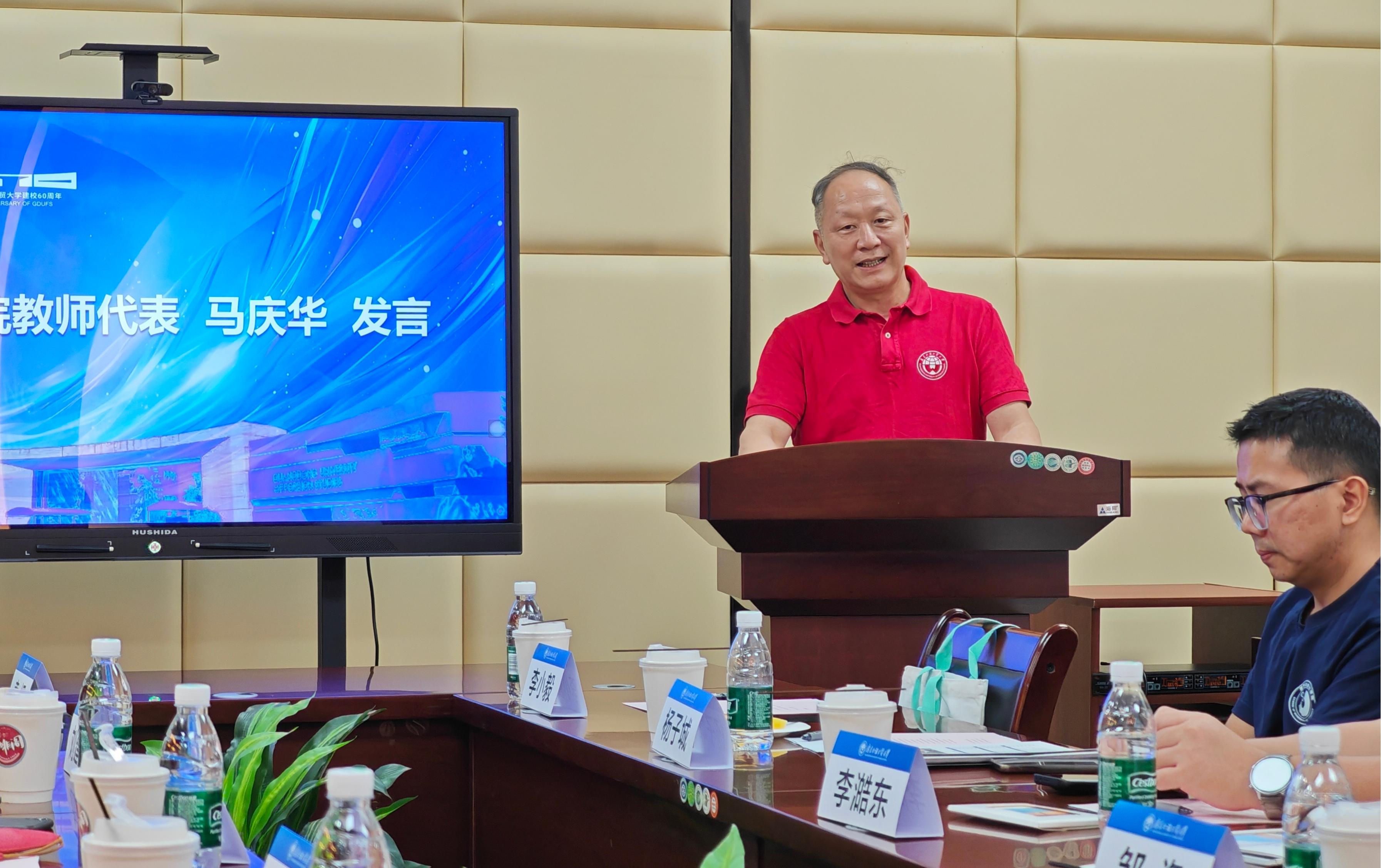 教师代表马庆华老师的发言充满温情与期待,他回顾了广外数学与统计学专业从无到有、从有到优的发展历程,还特别提到员工在校时的趣事回忆了与往届员工相处的点滴,表达了对员工们的殷切期望,希望员工们能常回校交流,为学弟学妹们分享经验、指引方向。