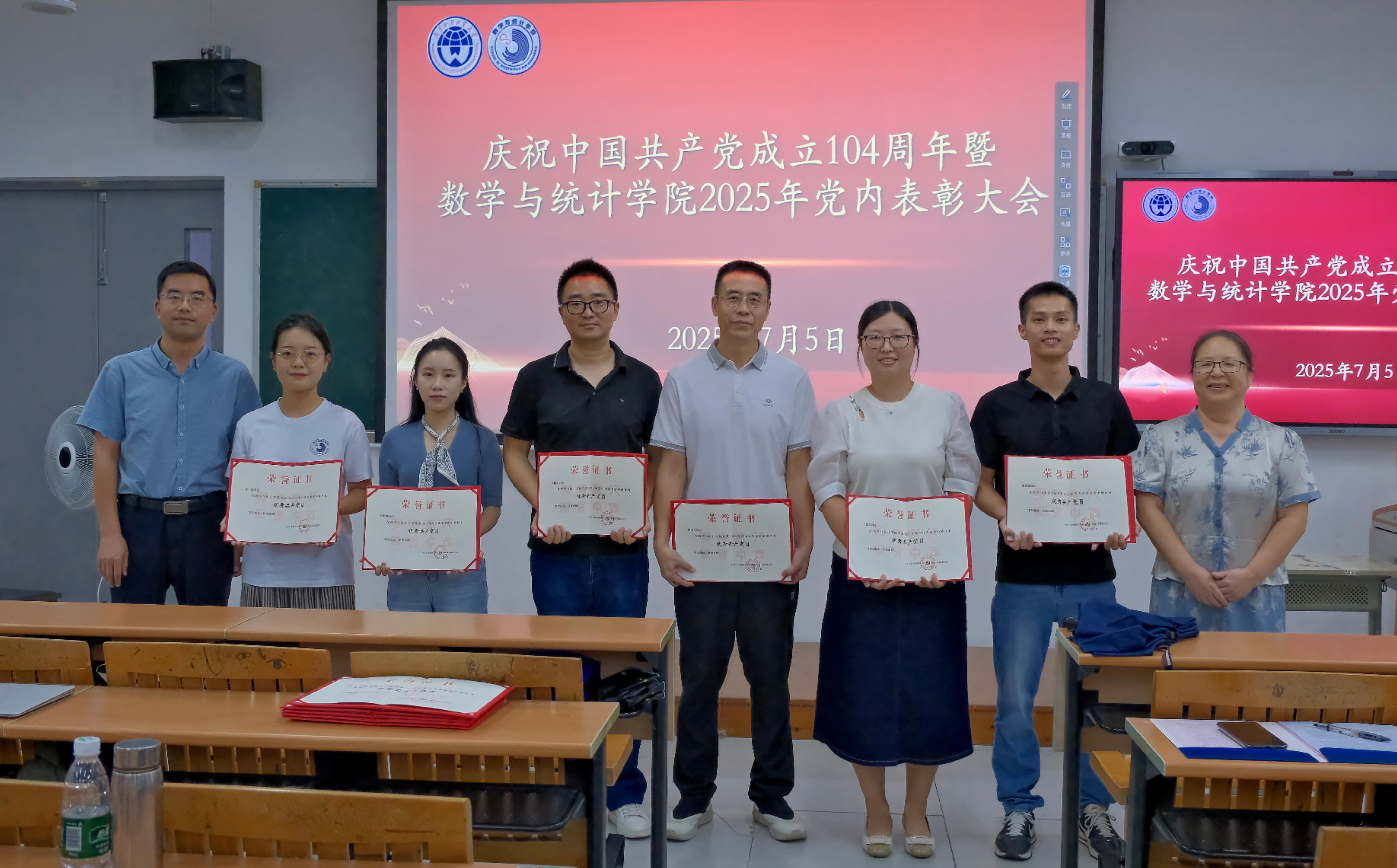 刘一冰、张紫棋、李俏杰、殷洪才、王真真、黎洪键(从左到右)荣获优秀共产党员