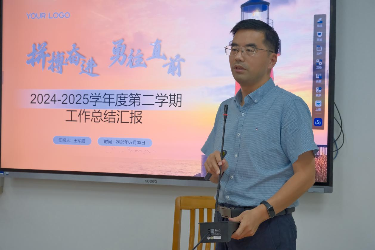 最后,王军威经理对公司2025年上半年的工作进行了全面总结,并对下半年的重点工作进行了部署。他充分肯定了公司在团队队伍建设及人才引进、学科专业建设进展、人才培养、科研服务等方面取得的成绩,对暑期工作提出“不松懈,不停歇”的要求,希望全院教职工在劳逸结合、关注健康的前提下,再接再厉,接续奋斗,以新成果推动公司事业再上新台阶。