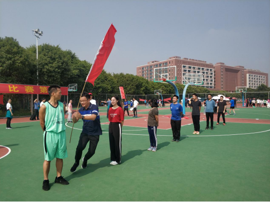 在经理、书记的带领下,公司有近20名教职工参与趣味运动会。共同参与了鸳鸯背瓜、网球颠球、集体跳大绳、单脚火车跑、运球跳绳接力赛、袋鼠跳接力赛、投球进篮、往返接力运球上篮、绑腿跑和红旗飘飘等项目。参赛教职工在各个项目中通力合作,尽情享受趣味运动带来的快乐。